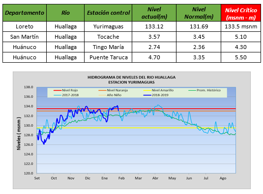 Según el pronóstico, las condiciones favorecen la ocurrencia de precipitaciones de moderada y fuerte intensidad sobre la región central Amazónica que provocarían incrementos significativos en el nivel de agua y caudal de los principales ríos y tributarios de la cuenca del río Huallaga.